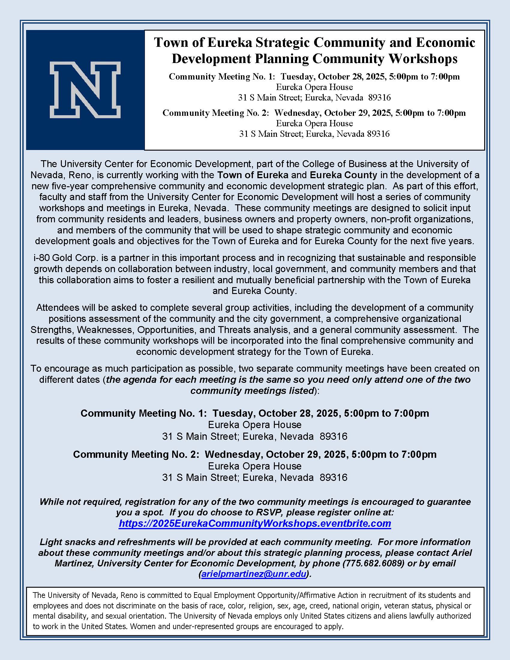 Town of Eureka Strategic Community and Economic Development Planning Community Workshops